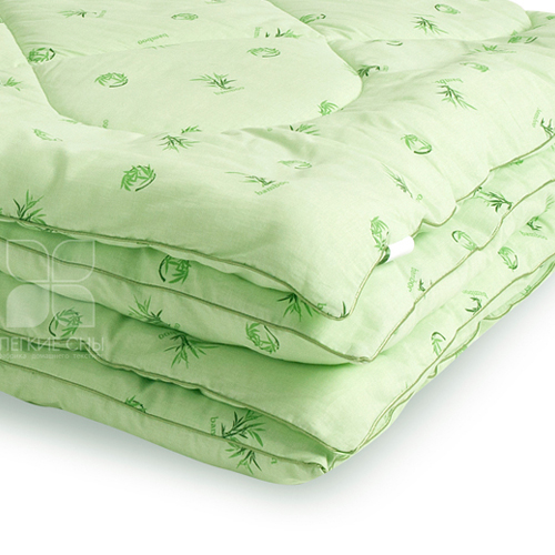 Особенностью одеяла является стеганый чехол, что не позволяет наполнителю скатываться в комки. В качестве наполнителя используется искусственный «лебяжий пух» и бамбуковое волокно, одеяло выполнено из ткани поплин (100% хлопок) салатового цвета с бамбуковым рисунком.