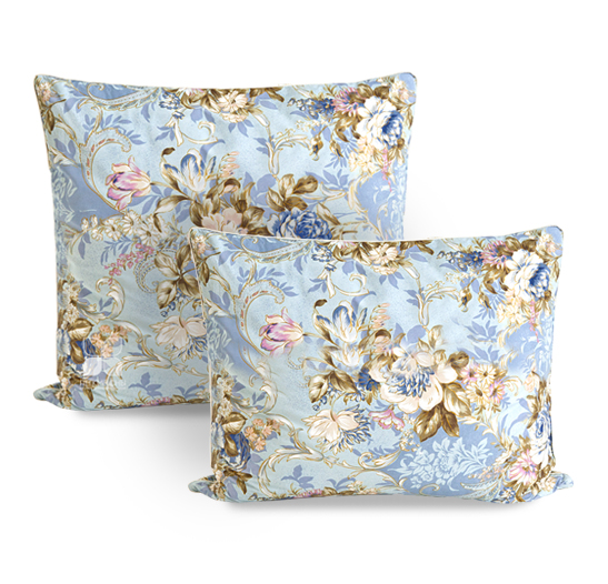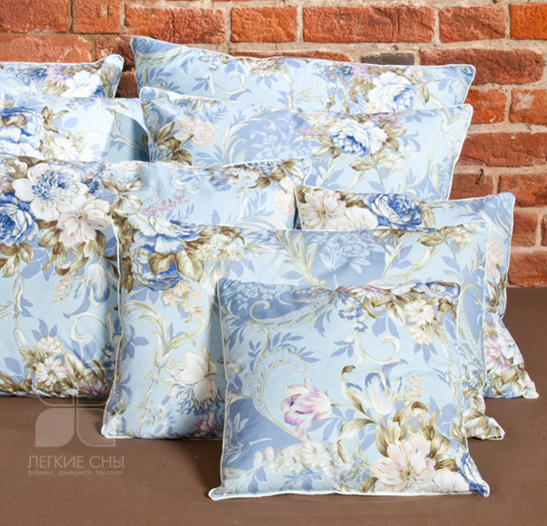 Эта экономичная по цене подушка изготовлена из полупуха 2 категории, выполнена из пуходержащего хлопкового тика с набивным цветочным рисунком, по краю подушки отделка белым кантом.
